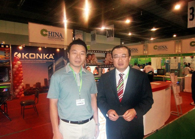 2012年6月16日福安市政府郭文胜副市长莅临大成集团电博会展会,与集团董事长亲切握手并合影