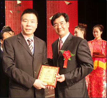 福建省政协副主席李川为杨旺章董事长颁发"福建省企业与企业家联合会副会长证书"