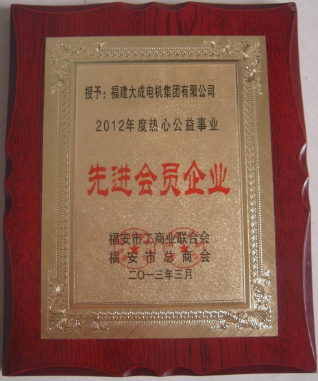 Fujian Dacheng Electric Group Co., Ltd. Won the 2012 Advanced Member Unit of Enthusiasm for Public Welfare